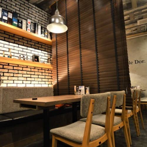 壁一面のレンガと木を基調としたお洒落な空間に心躍るはず◎